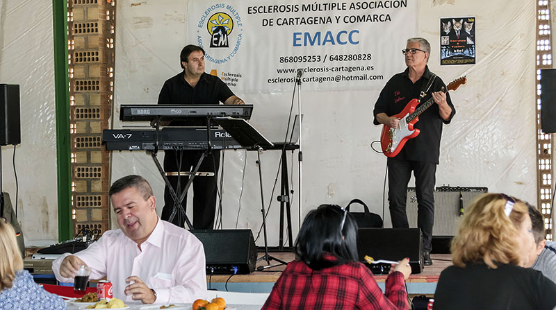 Esclerosis Múltiple Asociación de Cartagena y Comarca (EMACC), colectivo que preside María Ángeles Ros Aguirre, celebró la quinta edición de su almuerzo solidario a favor de los pacientes de esta enfermedad, en un ambiente muy agradable, aderezado por la música en directo, y que contó con la presencia de unas ciento cincuenta personas, registrando la visita del teniente de alcalde Francisco Calderón.