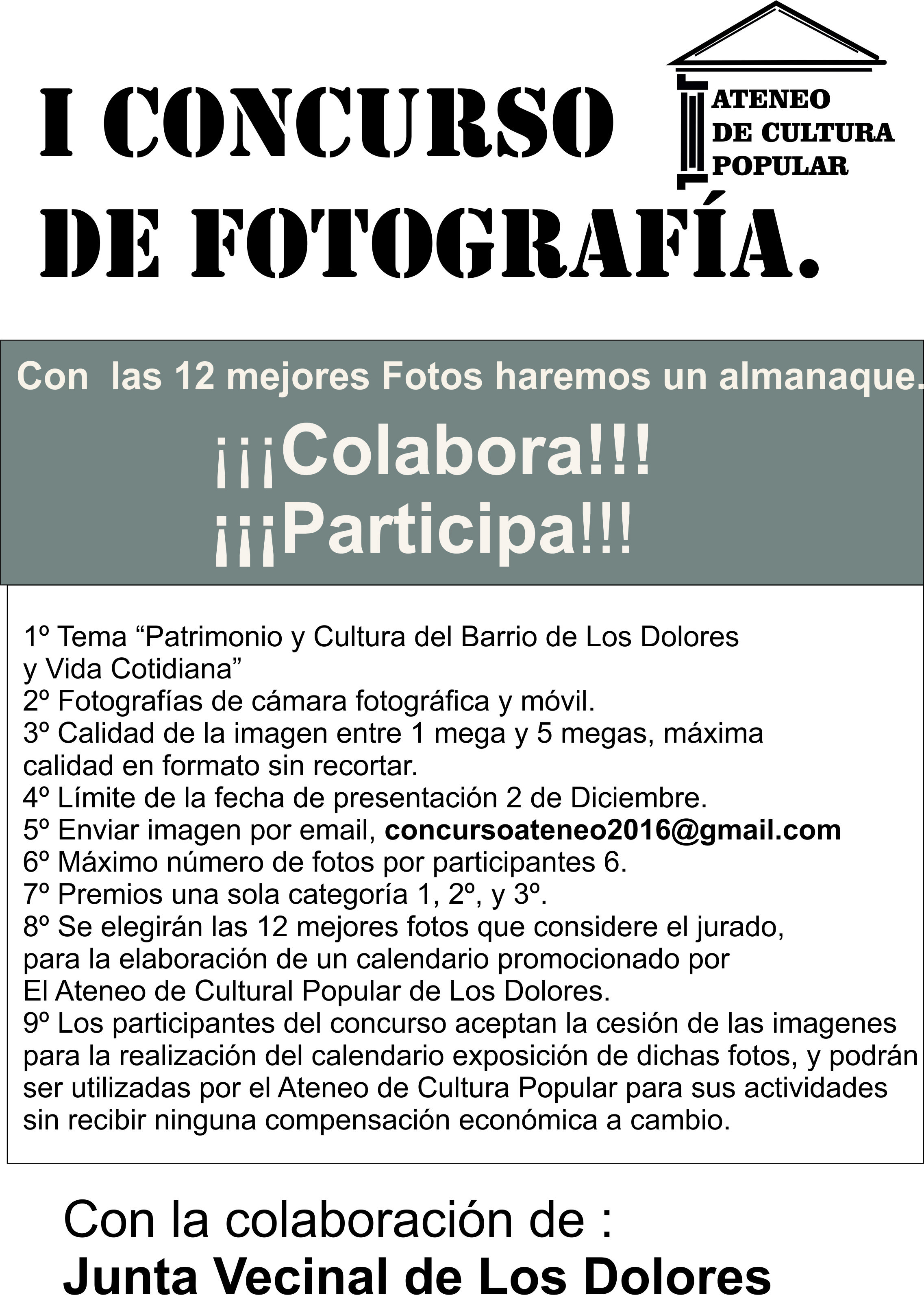 El límite de fecha de presentación es el 2 de diciembre y las fotografías deben ir bajo el tema "Patrimonio y cultura del barrio de Los Dolores y vida cotidiana", los doce mejores se expondrán en un almanaque.