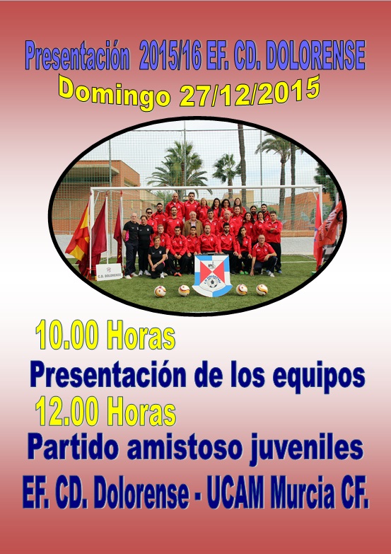 La cita será a las diez de la mañana del 27 de diciembre en el campo San Juan Bosco y a su conclusión se disputará el partido de juveniles entre el Club Deportivo Dolorense y el UCAM Murcia CF.