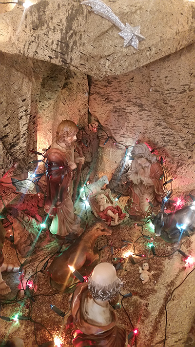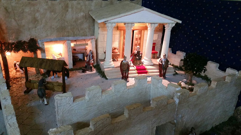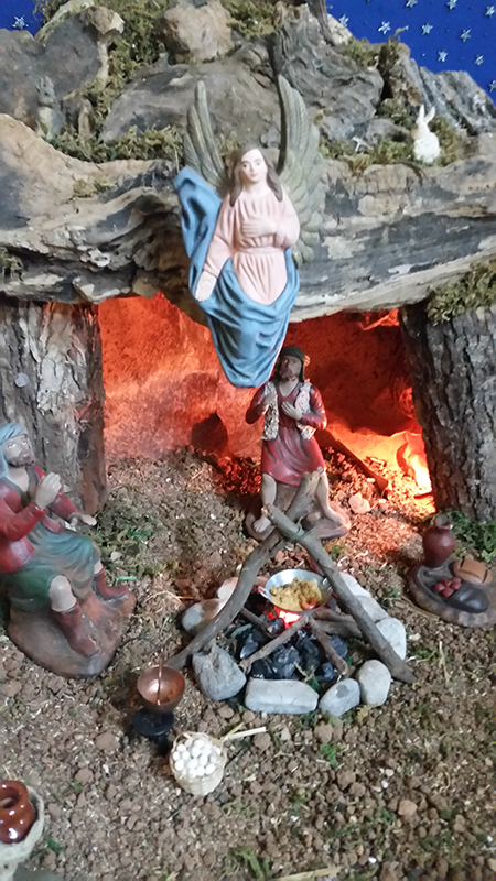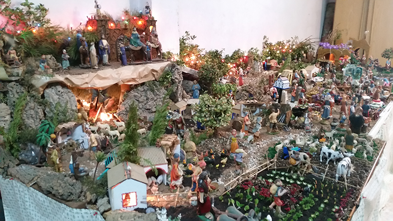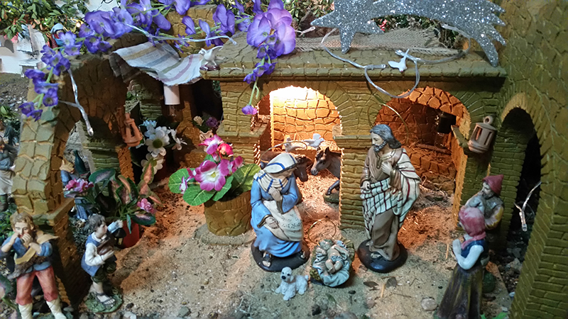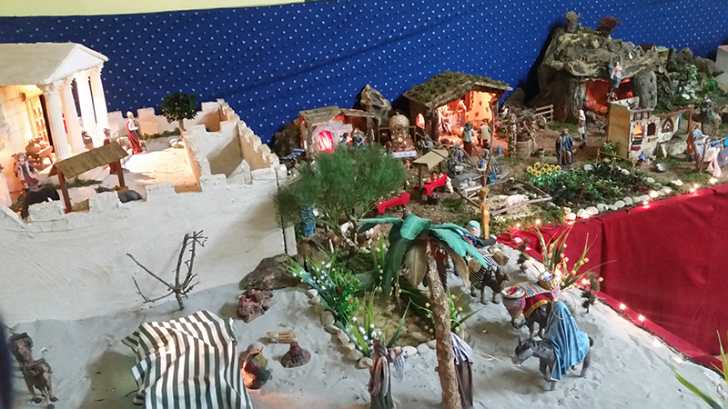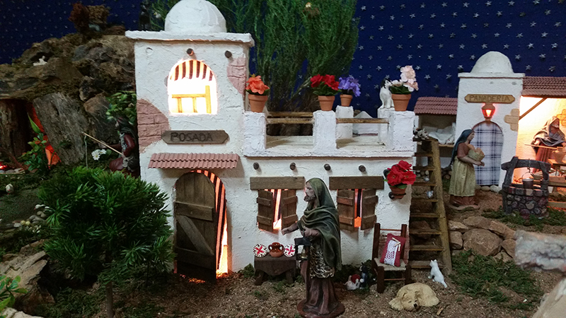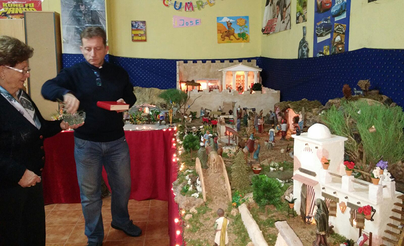 El párroco del Cristo de la Salud y de San Cristóbal, José Luis Riquelme, llevó a cabo ayer la bendición de diversos nacimientos que han montado este año familias de Los Dolores.