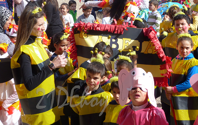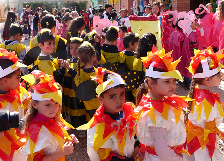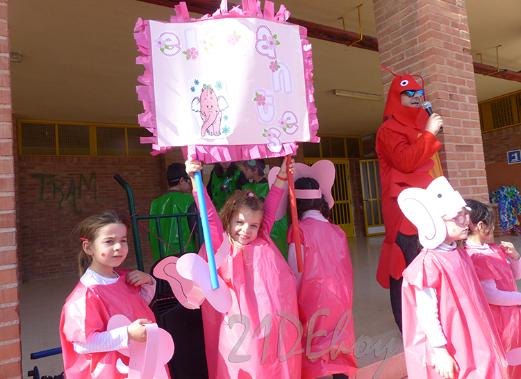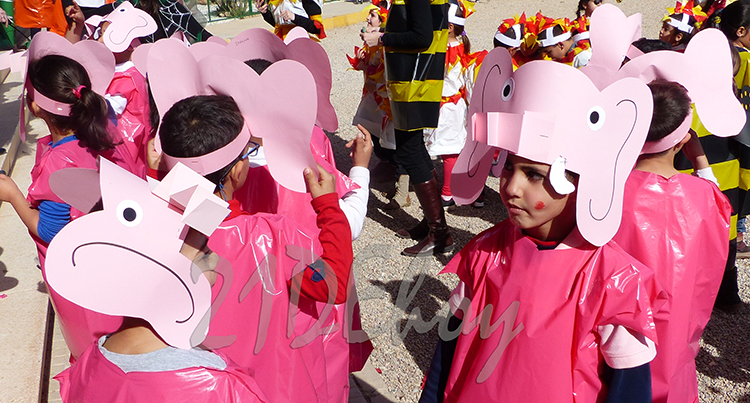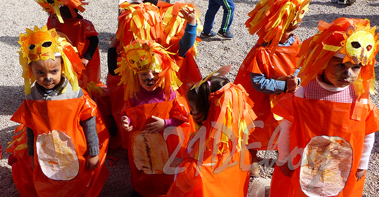 Leones, gatos, elefantes y otros simpáticos animales, además de algunos insectos, protagonizaron el desfile de carnaval del colegio Vicente Medina, que por vez primera se celebró en lunes, "un día, quizás, más apropiado que el viernes ahora que es lectivo", indicó su director.