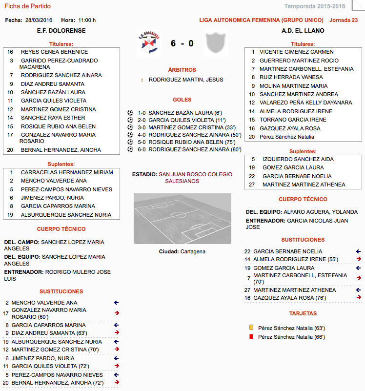 El EF Dolorense-Cartagena doblegó por un claro marcador a la AD El Llano, en partido de la Liga Autonómica femenina que quedó pronto encarrilado, pues a la media hora la ventaja del equipo del campo San Juan Bosco ya era de tres goles. CLASIFICACIÓN (pinchar aquí)