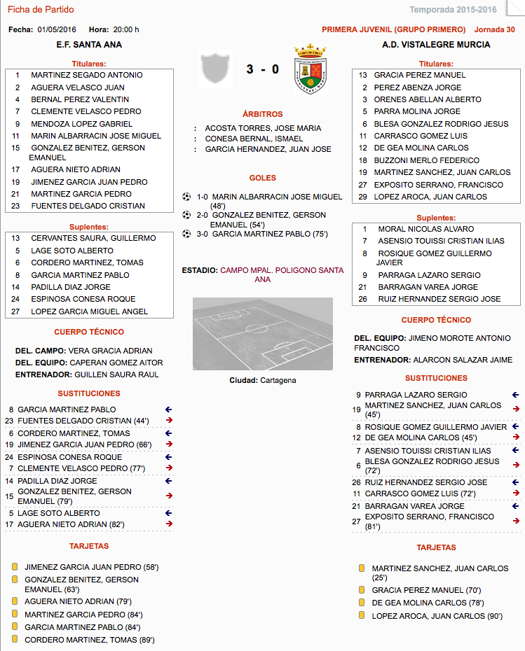 Primera juvenil:EFSA, 3 - Vistalegre, 0