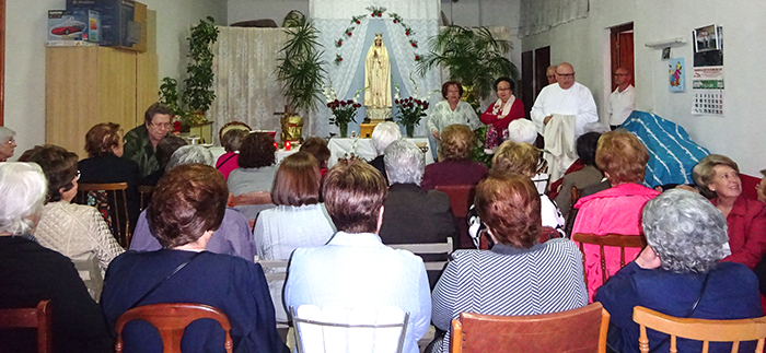 La familia encabezada por Conchi y Pepe recibieron a la Virgen de Fátima en su domicilio de Los Dolores, donde se celebró una eucaristía, que es novedad este año, oficiada por el párroco Juan Rosique.