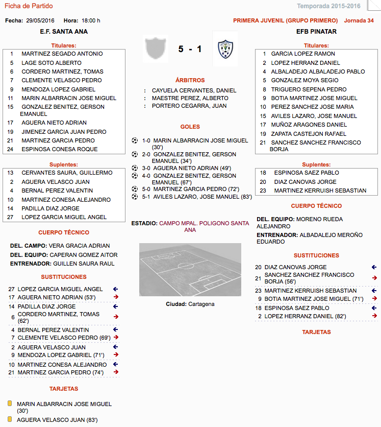 El equipo del Polígono Santa Ana, que la próxima temporada jugará en la Liga Autonómica, cierra la liga venciendo al Pinatar por 5-1. Por su parte, el cadete B ganó por 9-0 y acabará en segunda posición en su grupo. Marcadores del resto de equipos que siguen en competición.