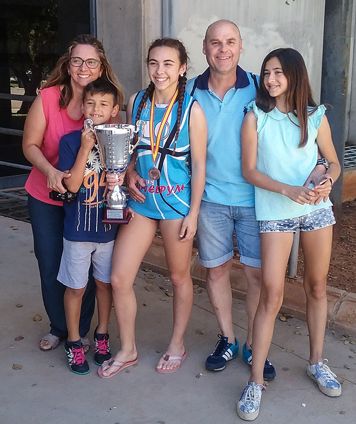 Elena es hija de los dolorenses Antonio Arnau y Encarni Cayuela, quienes han tenido a tres hijos deportivas con la mentada y María, enroladas en el voleibol (la segunda está en La Unión), y Toni, con el fútbol en Nueva Cartagena. ¿Por qué escogió el voleibol?, le preguntamos a la chica. “Por me gusta mucho como deporte de equipo y por los valores que adquieres con su práctica, además de los vínculos de amistad que se establecen”, indican a este periódico, además de resaltar que conlleva “un sacrificio grande”, y más cuando el esfuerzo en una afición no merma el que hay que hacer en otro terreno tan importante como es el de los estudios, donde se encuentra en cuarto curso de Secundaria.