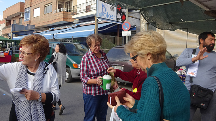 La Asociación Española Contra el Cáncer de Los Dolores ha llevado a cabo esta mañana la tradicional campaña de recogida de fondos para colaborar en la lucha contra esta temible enfermedad, recogiendo donativos y entregando a los vecinos solidarios la pegatina con la 'banderita' de la asociación.