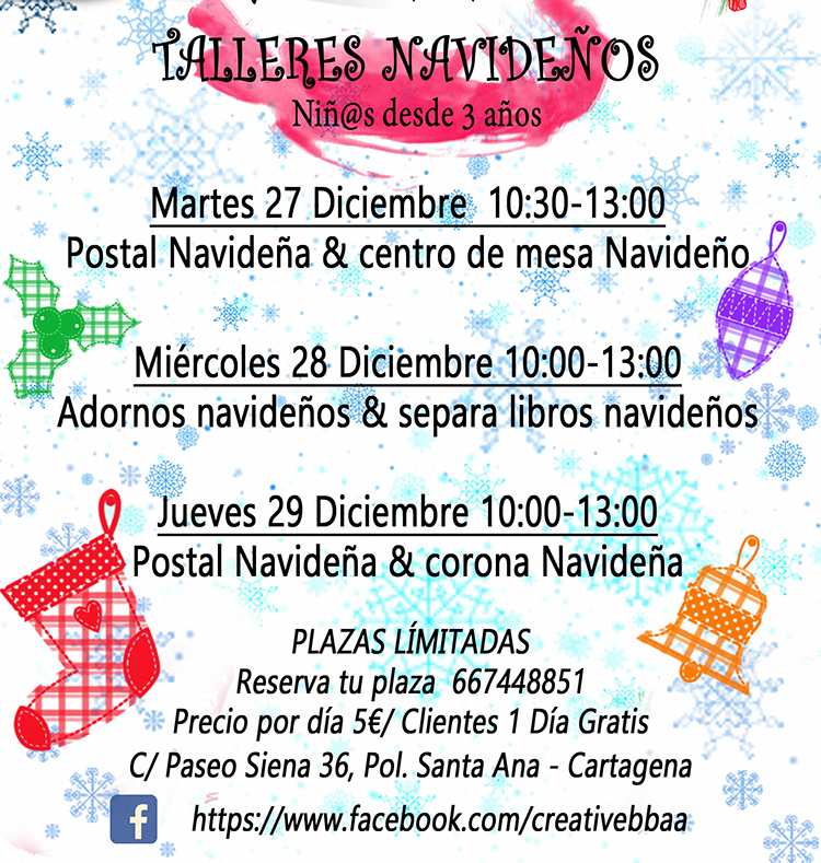 Los talleres que tendrán lugar en la última semana de diciembre se prolongarán desde las 10 hasta las 13 horas de cada jornada. Para los clientes de Academia Creativa un día es gratis y para el resto de vecinos sólo cuesta 5 euros por día. Serán actividades y manualidades navideñas adaptadas al nivel de cada niñ0.