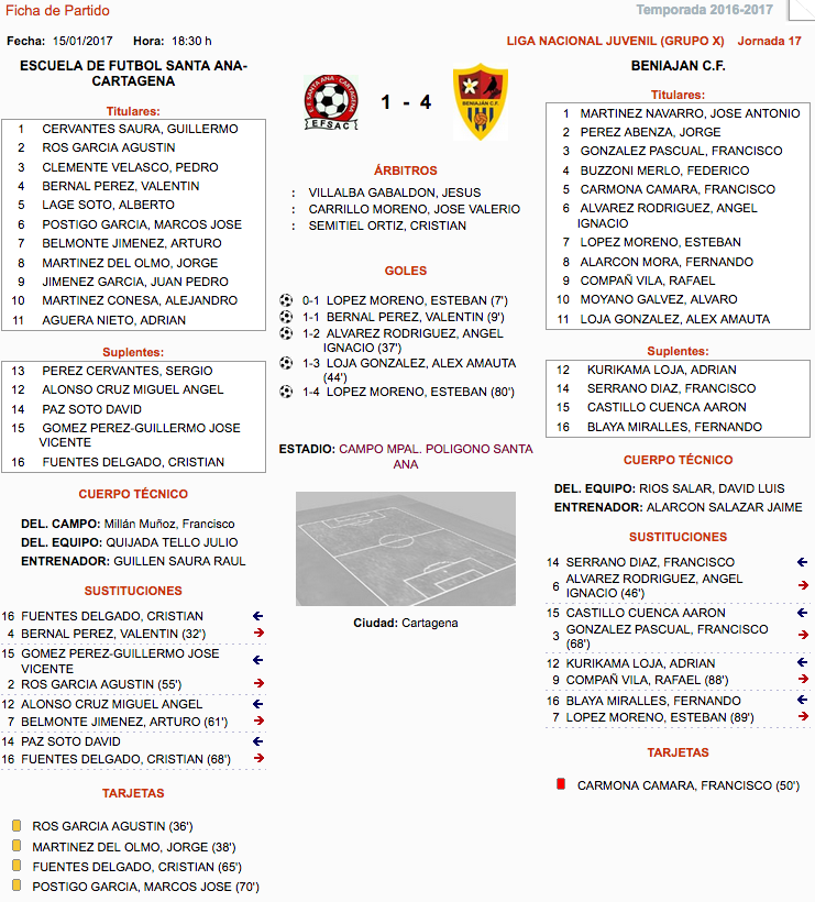 • Liga Nacional Juvenil: EFSA, 1 - Beniaján, 4