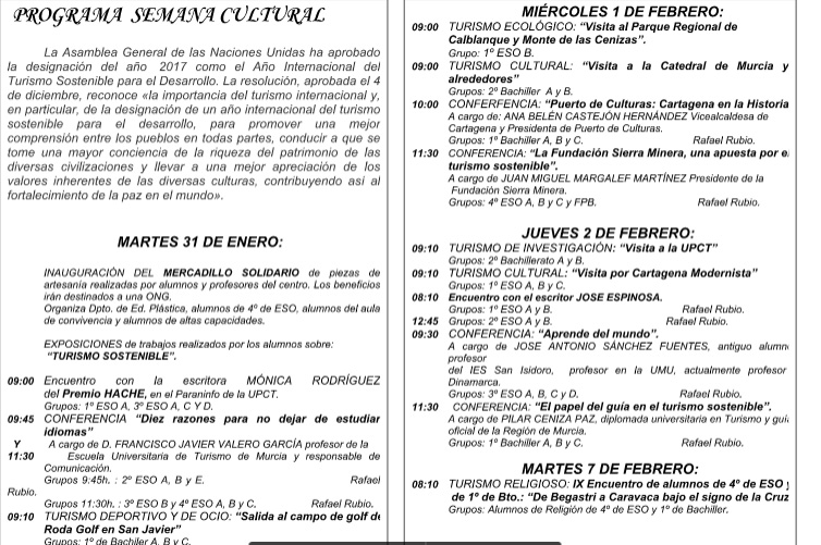 A lo largo de todos estos días realizarán un mercadillo solidario con manualidades realizadas por alumnos y profesores y cuya recaudación irá a una ONG, el año pasado la elegida fue ACHNUR, en esta ocasión se tratará de otra asociación sin ánimo de lucro.