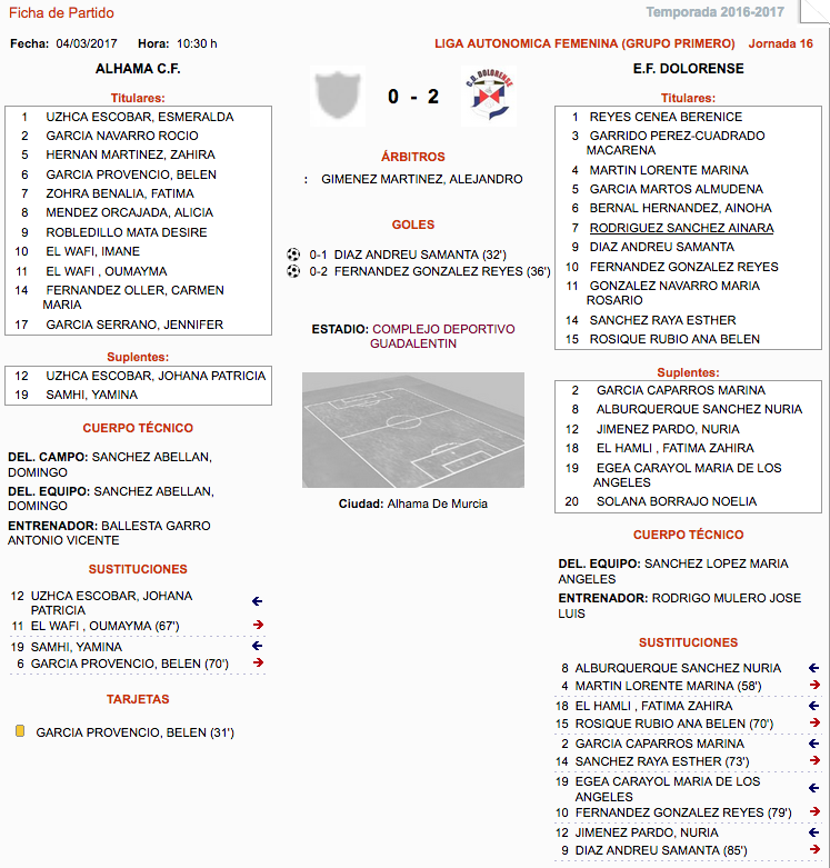 Dos tantos de Samanta y Reyes en los minutos 32 y 36 resolvieron el compromiso del equipo de la Liga Autonómica femenina de Los Dolores en casa del colista, Alhama.
