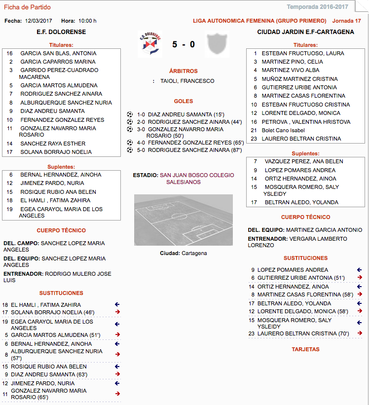 El equipo de la liga autonómica femenina del CD Dolorense resolvió con una goleada su compromiso frente al Ciudad Jardín. Samanta (en la foto adjunta), quien lleva once goles esta temporada, abrió el marcador al cuarto de hora y después marcaron Ainara (2), María y Reyes.