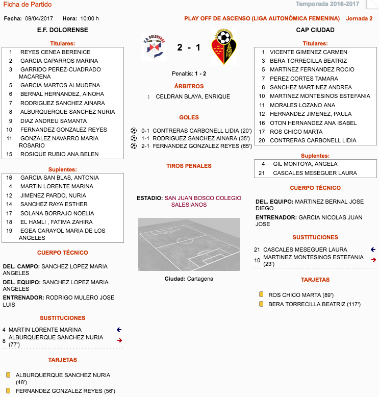 La zona de Los Gabatos, donde se encuentra el campo San Juan Bosco, debe su nombre a que hace años existían manadas de jabatos (cachorros de jabalí). Y ese mismo nombre se emplea para definir a aquellas personas que se muestran con audacia y valentía. Pues bien, de esto mucho han exhibido las jugadoras del equipo de Liga Autonómica del Club Deportivo Dolorense, que este domingo cerraban la temporada tras una más que emocionante eliminatoria ante un adversario a priori mejor, el CAP Ciudad de Murcia.