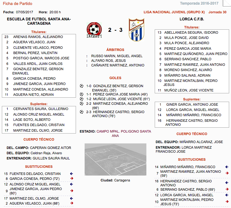 El equipo de la Liga Nacional Juvenil del Polígono Santa Ana iba ganando al intermedio, pero en media hora del segundo acto recibió los tres goles ante el Lorca.