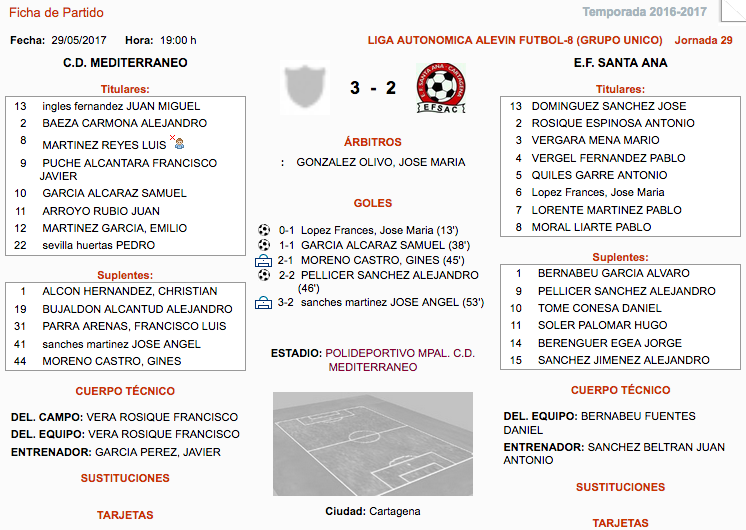 El equipo de la Liga Autonómica de fútbol-8 del Polígono Santa Ana consigui ayer, lunes, de forma matemática evitar el descenso de categoría, pese a perder ante el Mediterranéo y acumular ocho jornadas de derrotas, gracias a que el Beniaján pierde su compromiso de esta penúltima jornada.
