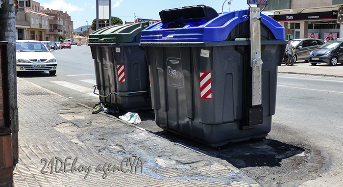 La quema de contenedores sigue siendo una lacra en el municipio de Cartagena. El pasado año ardieron 121 (cada uno cuesta 751 euros reponerlo) y este año la cifra es similar. Esta vez fueron los dos ubicados en la avenida San Juan Bosco, cerca de la gasolinera, los que ardieron en la noche del viernes, causando daños al arbolado de la vivienda junto a la que están ubicados, como se observa en los restos de cipreses quemados. A la mañana siguiente habían sido respuestos, lo que agradecen los vecinos.