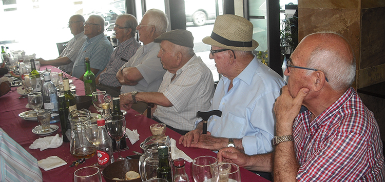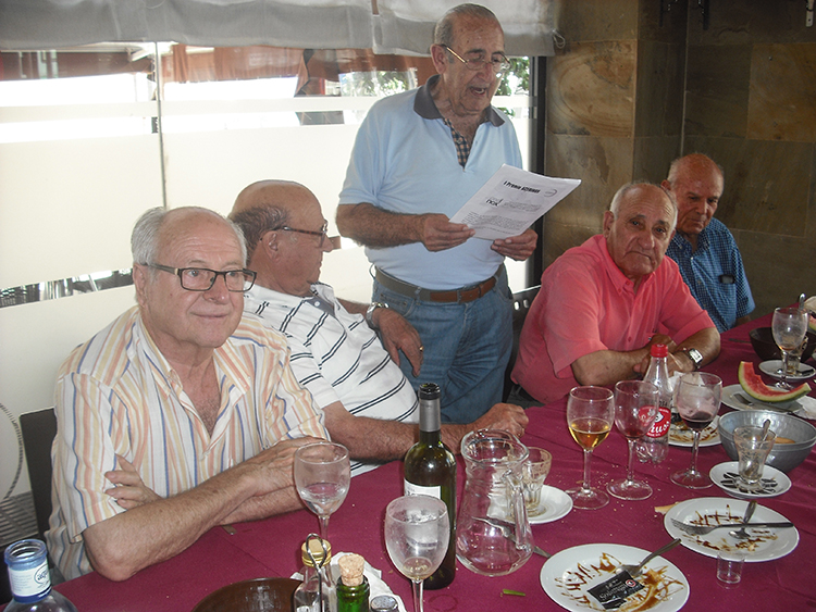 Un grupo de amigos jubilados de Los Dolores celebró el tercer encuentro en un restaurante del barrio con un almuerzo que se vio enriquecido con la lectura de unas poesías con las que se rindió homenaje a los compañeros fallecidos Pepe Castejón y Pepe ‘El Secretario’.