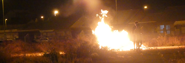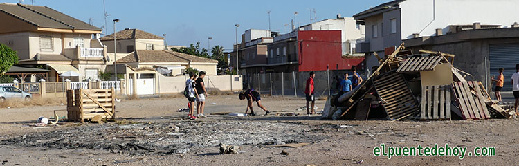 La otra faceta es la chiquillería, pues por encima de tradiciones, parece que el gran aliciente para este sector es explotar fuegos de artificio, lo que no faltó en toda la geografía de Cartagena Norte. En este reportaje ofrecemos hogueras que ardieron en cuatro puntos distintos de Los Dolores y San Cristóbal. La más importante de esta última barriada fue quemada por un grupo de vándalos la noche anterior, teniendo los niños que, contra reloj, recoger maderas y levantar otra en apenas un día. La imagen adjunta muestra esa labor con los restos de las brasas.