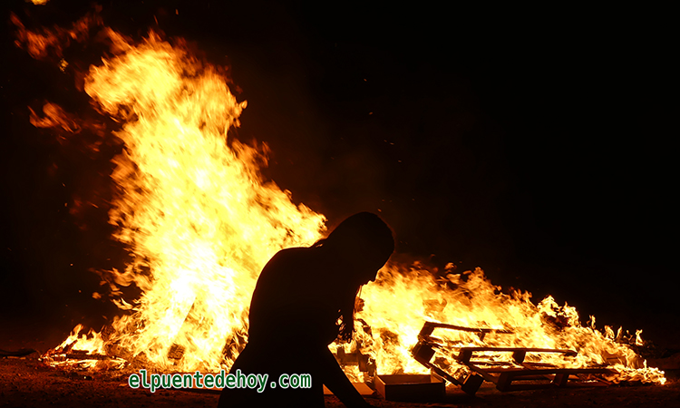 - La hoguera de San Cristóbal hubo de rehacerse en un día después de que fuera quemada en la noche anterior por un vándalos