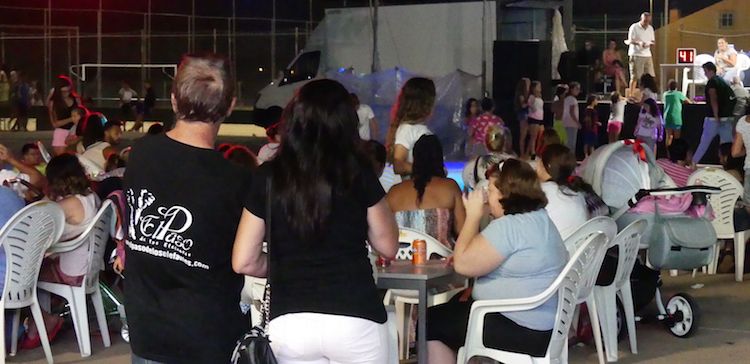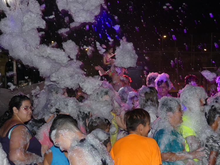 Si la noche del miércoles hubo de suspender el concurso de disfraces por no presentarse candidato alguno, la velada del jueves fue muy diferente, con numerosos vecinos que acudieron al recinto festero del polideportivo para pasar un agradable rato bajo el cielo ya fuese cenando o jugando a la rifa familiar, para después de la medianoche comenzar el lanzamiento de espuma, que finalmente no tuvo lugar en la plaza de la Iglesia como se había anunciado. Fueron muchos jóvenes los que disfrutaron de la gran cascada en la noche joven.