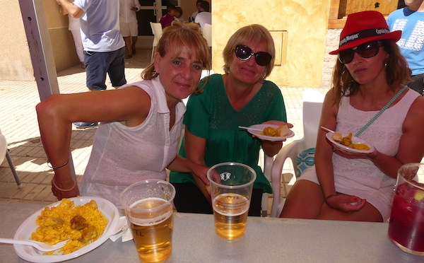 Cafetería Racós ha repartido entre sus clientes en la mañana del domingo los platos surgidos de una paella elaborada con motivo de las fiestas.