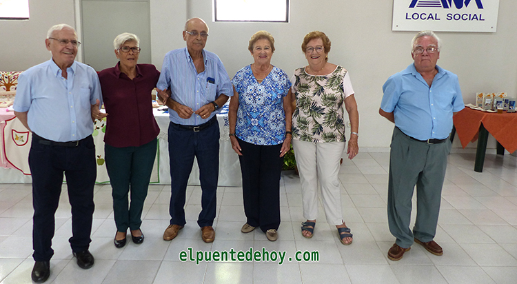 ayuntamiento de Cartagena; Damián Perez, coordinador municipal de Servicios Sociales; y Loli Larios Romero, responsable de actividades de mayores, junto a asociados del club y Ruth Santiago Mellado, quien ha sido la monitora del taller de manualidades cuyos resultados fueron expuestos en el local de la Entidad de Conservación, sede de Mayorazgo, durante la puesta de largo de estas jornadas.