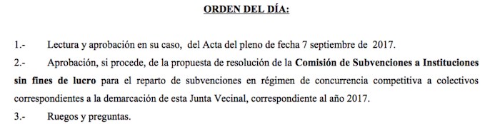 A las 20.30 horas, en el salón de actos del local social, está fijado el inicio de la sesión ordinaria de la Junta Vecinal Municipal de Los Dolores en la que se presentará la propuesta de la comisión de subvenciones a instituciones sin ánimo de lucro. También habrá capítulo de ruegos y preguntas. Pueden asistir todos los vecinos que lo deseen.
