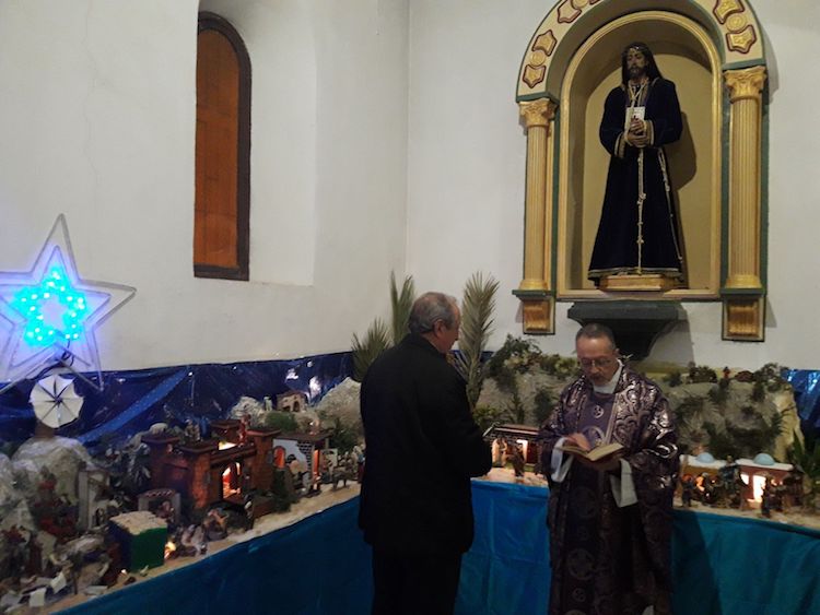 El sacerdote Francisco de Asís Pagán Jiménez llevó a cabo la bendición del gran Nacimiento que alberga la parroquia de la Patrona de Los Dolores.