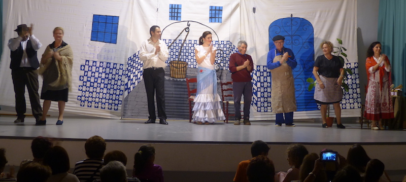 El grupo de teatro de la barriada llevó, con la representación de tres sainetes, las sonrisas a unos vecinos que desbordaron el aforo del salón de actos del local social.