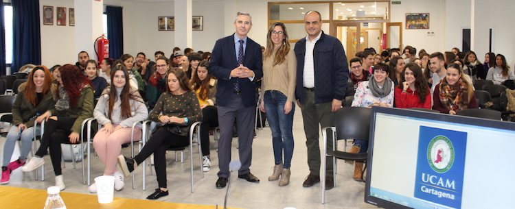 Durante una charla celebrada hoy en las instalaciones de Los Dolores, se ha explicado que la Universidad Católica facilita a sus alumnos ayudas exclusivas para estudiar en Estados Unidos y Canadá, además de las becas de estudio y prácticas Erasmus por Europa y las Santander-UCAM por Latinoamérica.