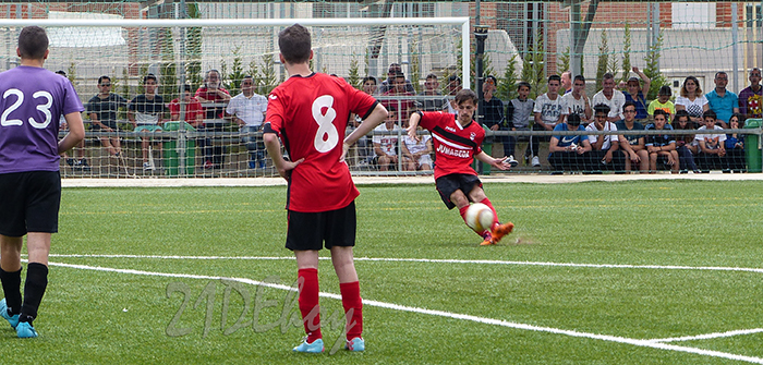 El balón se estrelló en el larguero de la meta del San Ginés en la ejecución de esta falta directa