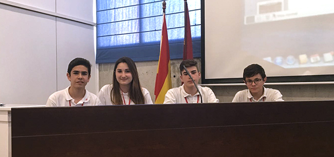 Miguel Castro (introductor), José Manuel Sánchez (refutador uno), Breogán Menéndez (refutador dos) y Amanda Abenza (conclusora) consigue el título regional de debate escolar para el colegio Miralmonte y se clasifica para la final nacional.