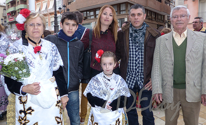 Carmen, Pablo, Lola, Raquel, Jesús y Francisco 'de la Fragua' el Viernes de Dolores en la ofrenda floral a la Patrona de Cartagena.