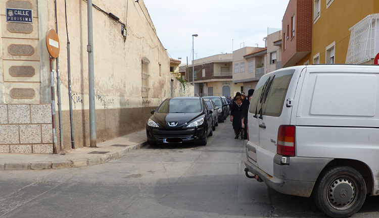 Una furgoneta cruzando por mitad del vía crucis del Cristo de la Salud que tuvo lugar el pasado Viernes Santo, una circunstancia que desluce la procesión y que también tiene un importante riesgo.