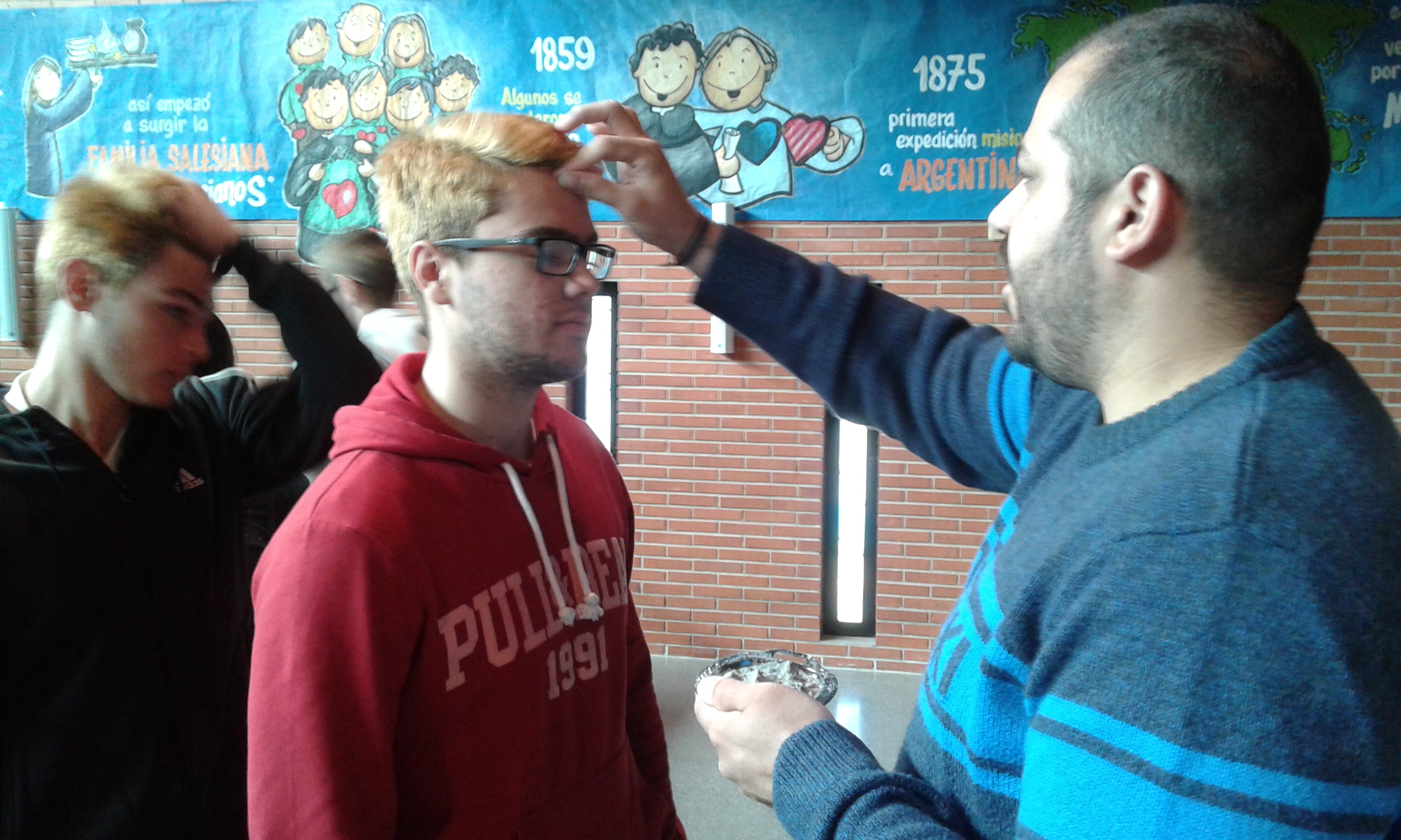 Alumnos de la ESO y Bachillerato de Salesianos participaron en la imposición de la ceniza en el centro educativo.