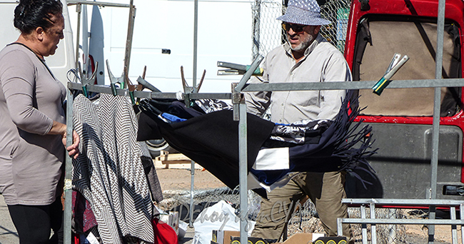 La fuerza que Eolo ha imprimido hoy al viento se ha dejado notar en el desarrollo del mercado dominical de la barriada San Cristóbal.