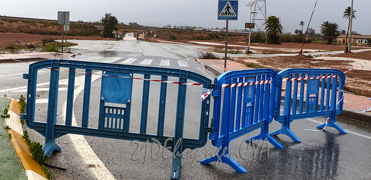 Siguen cortadas al tráfico la vía de salida de Molino Derribao, la que une Los Dolores con Molinos Marfagones y el Camino del Sifón, a la altura del cruce con la vía del tren, informa la Policía Local de Cartagena.