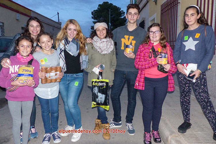 Una de las brigadas de jóvenes voluntarios de la parroquia de María Auxiliadora que durante la tarde de este sábado han recorrido domicilios de los barrios de Cartagena Norte recogiendo alimentos no perecederos para ayudar a las familias más necesitadas en las inminentes fechas navideñas.