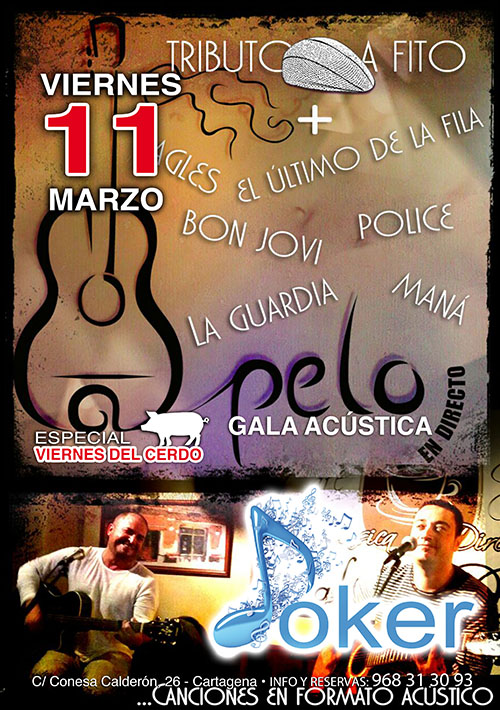 Pub Jóker acoge esta noche un concierto en acústico en homenaje a Fito&Fitipaldis, además de Eagles, El último de la fila, Police, Bon Jovi, La Guardia, Maná y otros. Será a las 23.30 horas, con entrada gratuita.