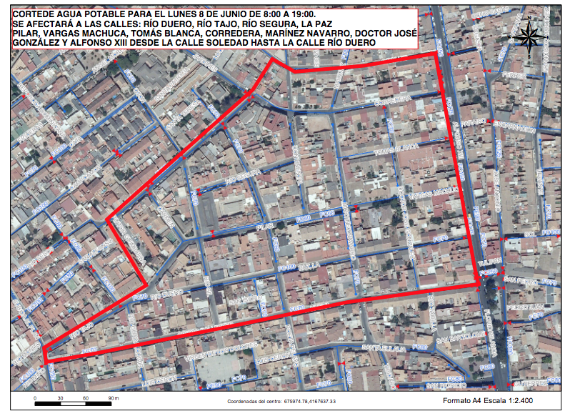 Comenzará a las 8 de la mañana y tendrá una duración máxima aproximada de once horas, afectando a las siguientes calles: Río Duero, Río Tajo, Río Segura, La Paz, Pilar, Vargas Machuca, Tomás Blanca, Corredera, Martínez Navarro, Doctor José González y Alfonso XIII (desde la calle Soledad hasta la calle Río Duero). na vez finalizados los trabajos dentro del horario previsto, el servicio quedará restablecido.