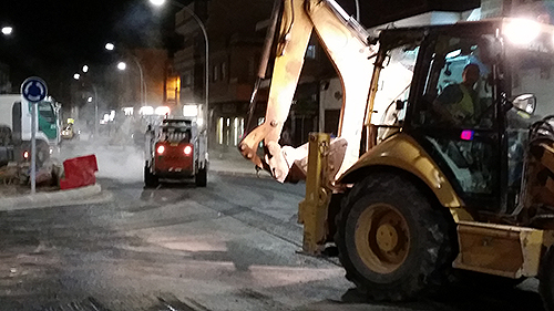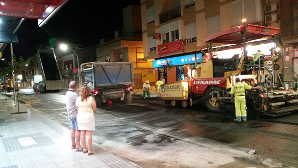 Reportaje con vídeos y fotografías de los trabajos de asfaltado que se están llevando a cabo en la avenida principal de Los Dolores, calle Alfonso XIII, entre las nueve de la noche y las ocho de la mañana para alterar lo menos posible el denso tráfico de la zona.