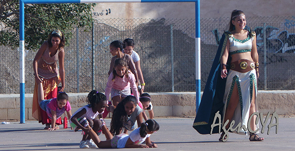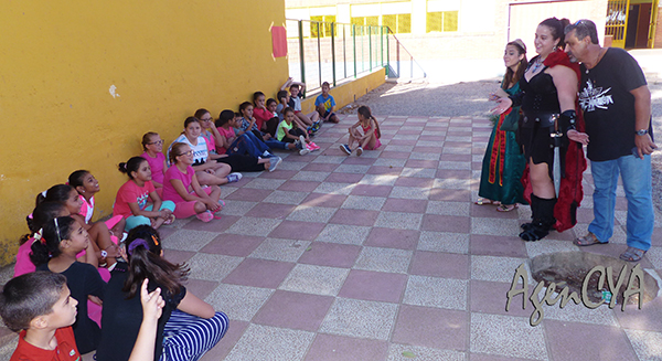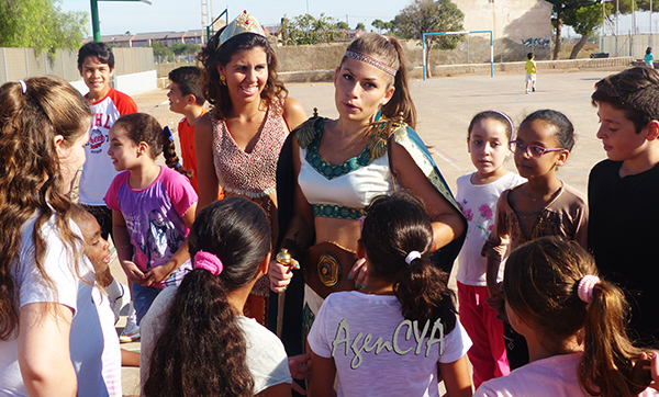 Festeros de las tropas de Baal-Hammon, Honderos Baleares, Mercenarios de Lobetania y Caballeros e Isis de Carthago estuvieron ayer durante dos horas en el colegio Vicente Medina, donde explicaron a los alumnos la historia de lo que sucedió en Cartagena entre los años 223 y 209 antes de Cristo, cuando se fundó Qart-Hadast y después los romanos crearon Carthago-Nova, además de darles a conocer los detalles de la fiesgas de Carthagineses y Romanos, que recupera aquellos históricos episodios en clave lúdica.
