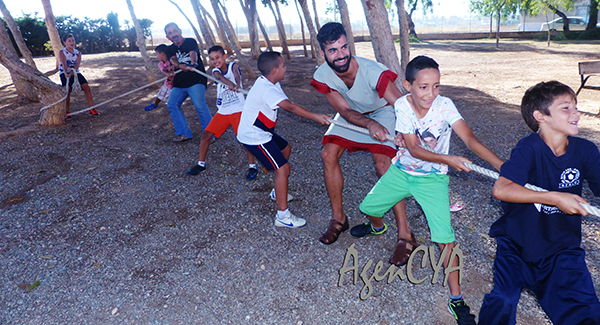 Después, en el patio del colegio, se han organizado diversos juegos, como la ‘sokatira’ (batalla de la cuerda) y han aprendido la popular ‘Danza lobetana’ tan característica en las noches de campamento.