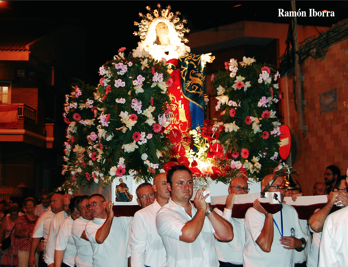 El final de las fiestas de Los Dolores culmina con la procesión de la Virgen de Los Dolores, quien estuvo acompañada por las fiestas y todos aquellos devotos que quisieron ir detrás de ella, además del concejal Francisco Calderón; el presidente de la Asociación de Vecinos, José García Alcaraz; el presidente de la hermandad, Juan Francisco Hernández; y el nuevo párroco, Juan Rosique.