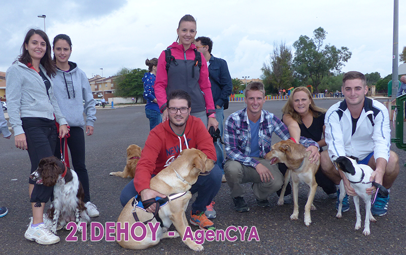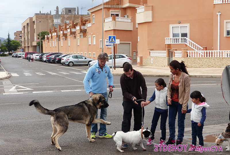 La joven Asociación Polígono Residencial Santa Ana, que capitanea Alberto Ferrer, sigue agudizando el ingenio para potenciar la actividad en el complejo del barrio norte de Cartagena. En esta ocasión ingeniaron celebrar una convivencia canina, que se desarrolló este domingo con un gran éxito pese a que la llovizna hizo temer lo peor a primera hora, pero que después sólo originó un ligero retraso en los horarios previstos. Labrador, bodeguero andaluz, springer spaniel, chiguagua, dálmata, samolledo, pastor alemán, braco-galgo, cócker, bulldog francés, yorsite, fosterrier, américa stanford, braco húngaro y, entre otros muchos, variedad de mestizos fueron una muestra de las diferentes razas y tamaños que se dieron cita, con unos ciento sesenta participantes cuyos perros lucieron el distintivo del pañuelo rojo. También hubo algunos de los que participarán en la ‘carni-cross de artillería’ que este año se disputará dentro de unas semanas en Cartagena sobre 5 kilómetros. También acudieron asociaciones, como Patitas Unidas de Los Alcázares, pues la convocatoria no sólo atrajo a vecinos del entorno, sino de diversos puntos de Cartagena y, como hemos apuntado, de otros municipios.