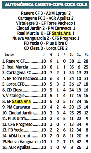 Autonómica cadete: Real Murcia, 0 - EFSAC, 1. Primera derrota de la temporada de los murcianos.