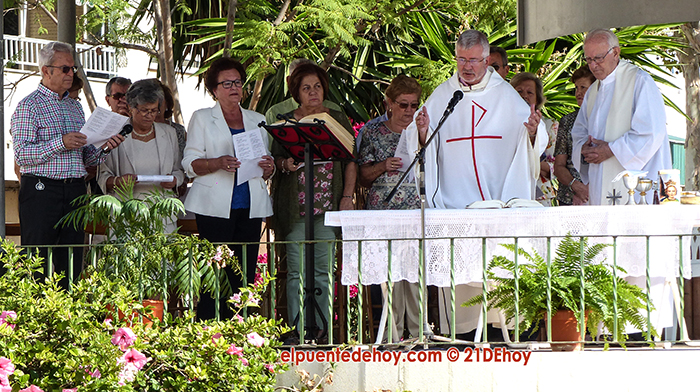 La plaza de María Auxiliadora ha sido el escenario de la celebración de este acto litúrgico que cierra los breves festejos organizados este año por la asociación vecinal que preside Salvador Soto. La eucaristía fue oficiada por el reverendo Juan Bosco, quien en el Día de la Virgen del Pilar destacó el papel de la madre de Jesús. “Todos necesitamos a María, pues ella nos da la fuerza que sostiene nuestra fe; es como el pilar de una casa”, expresó.