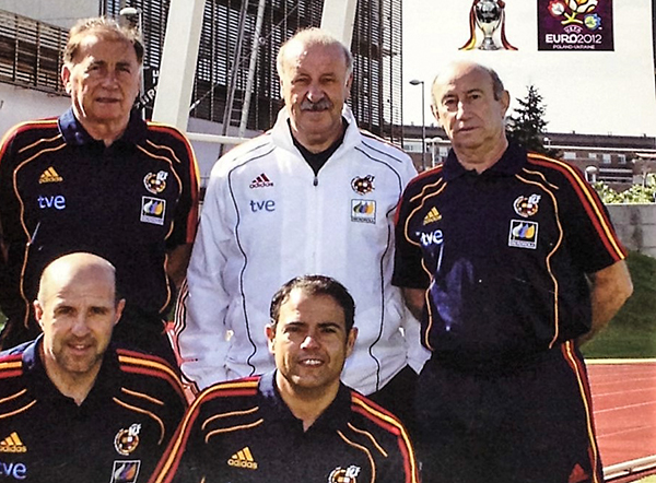 El técnico, quien ha sido ayudante de numerosos entrenadores del equipo del Bernabéu y de Vicente del Bosque en la selección nacional, ha visitado la nueva sede de los simpatizantes blancos en Los Dolores.