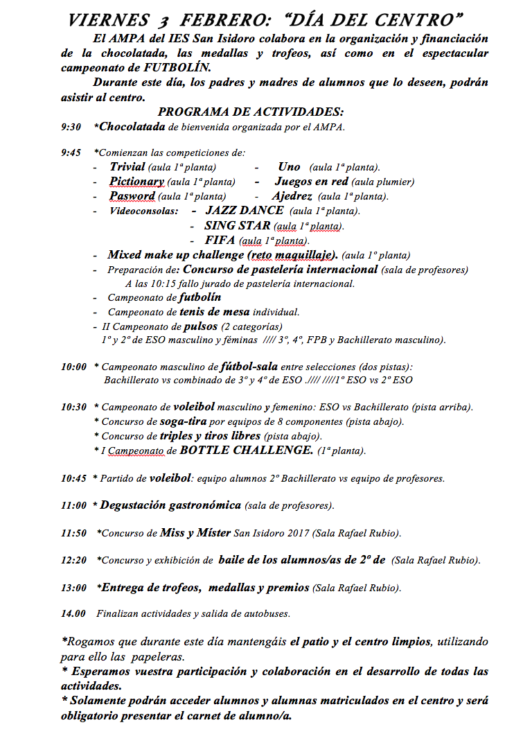 La XX Semana Cultural concluye para acoger hoy el ‘Día del centro’ con numerosas actividades y actos de convivencia entre alumnos y docentes.