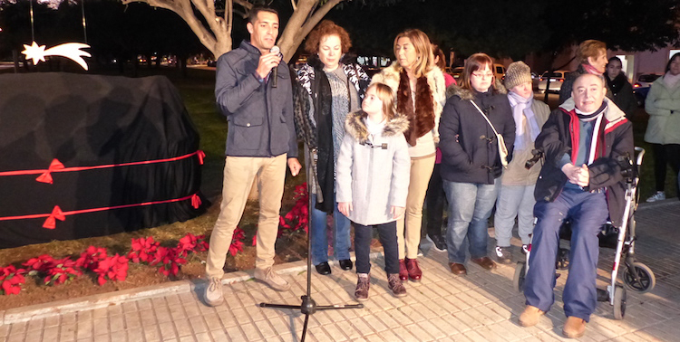 El Polígono Santa Ana cuenta desde anoche con un Nacimiento en uno de los puntos con más afluencia de viandantes, en concreto, en el cruce de las avenidas Venecia y Turín. Eduardo Vilar, presidente de la Entidad de Conservación; Carmen Vargas, gerente de Asido; y Carmen Martín del Amor, concejal de Asuntos Sociales, fueron los que llevaron a cabo la puesta de largo junto a alumnos de la asociación de atención integral a personas con síndrome de down y a sus familias, que tiene su sede en este complejo residencial. Tras descubrir las imágenes, el sacerdote de la parroquia de María Reina de los Corazones, Cletus Padinjarenedumparambil, llevó a cabo la bendición.